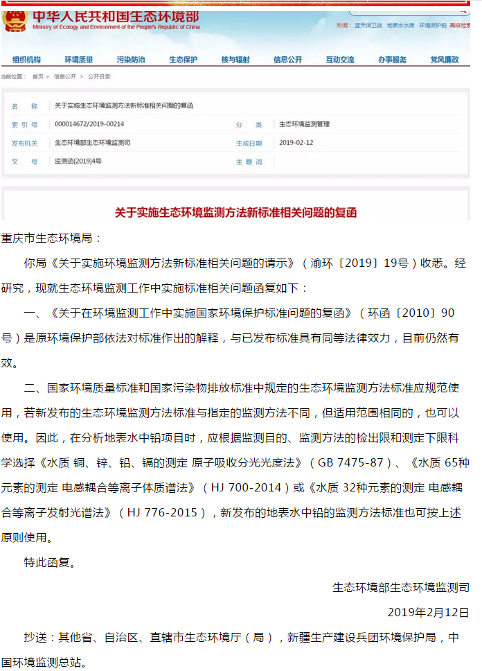 環(huán)境部:關于實施生態(tài)環(huán)境監(jiān)測方法新標準相關問題的復函